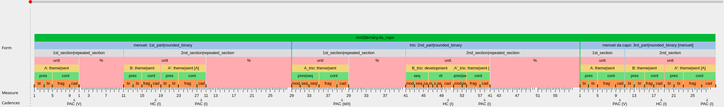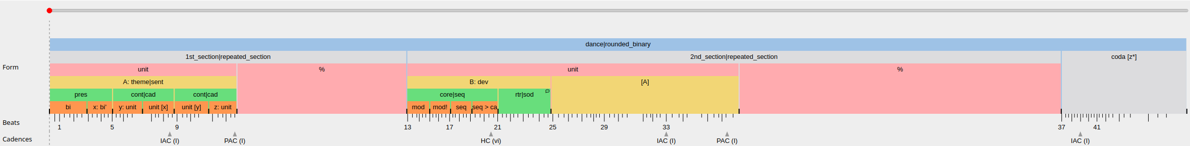 ) and a cadential unit (cad