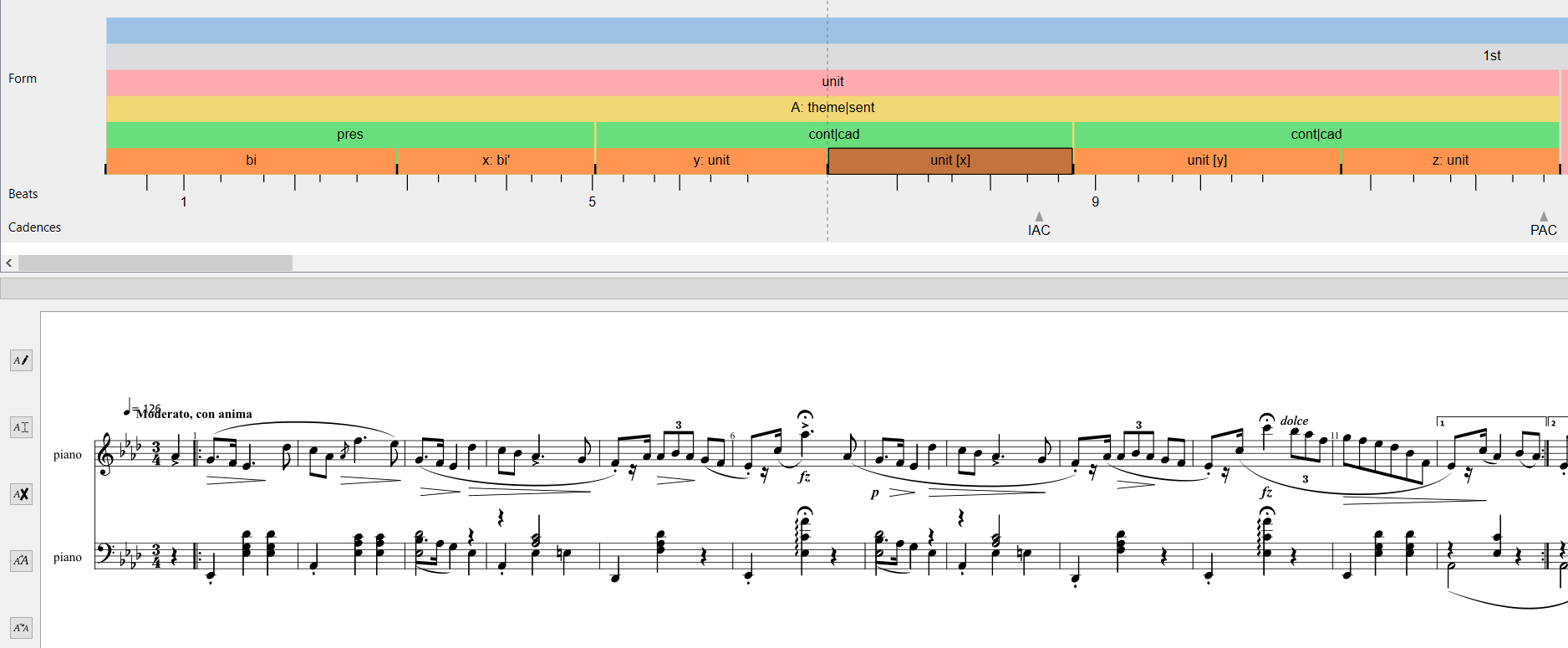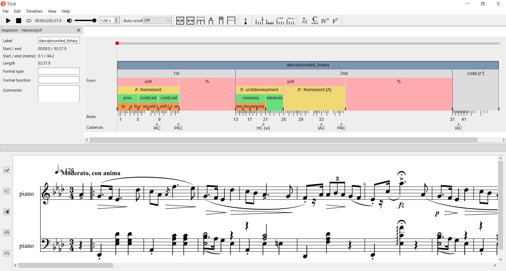 This section uses Frédéric Chopin: Mazurka in A-flat major, op. 24, 3 (1835) (see: Examples) to explain the use of TiLiA for creating form annotations.